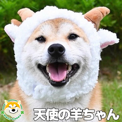 数量限定 天使の羊 おもしろ帽子 ハロウィン 犬 猫 帽子 ふわもこ 変身 ボア 白 マジックテープ留め 犬服