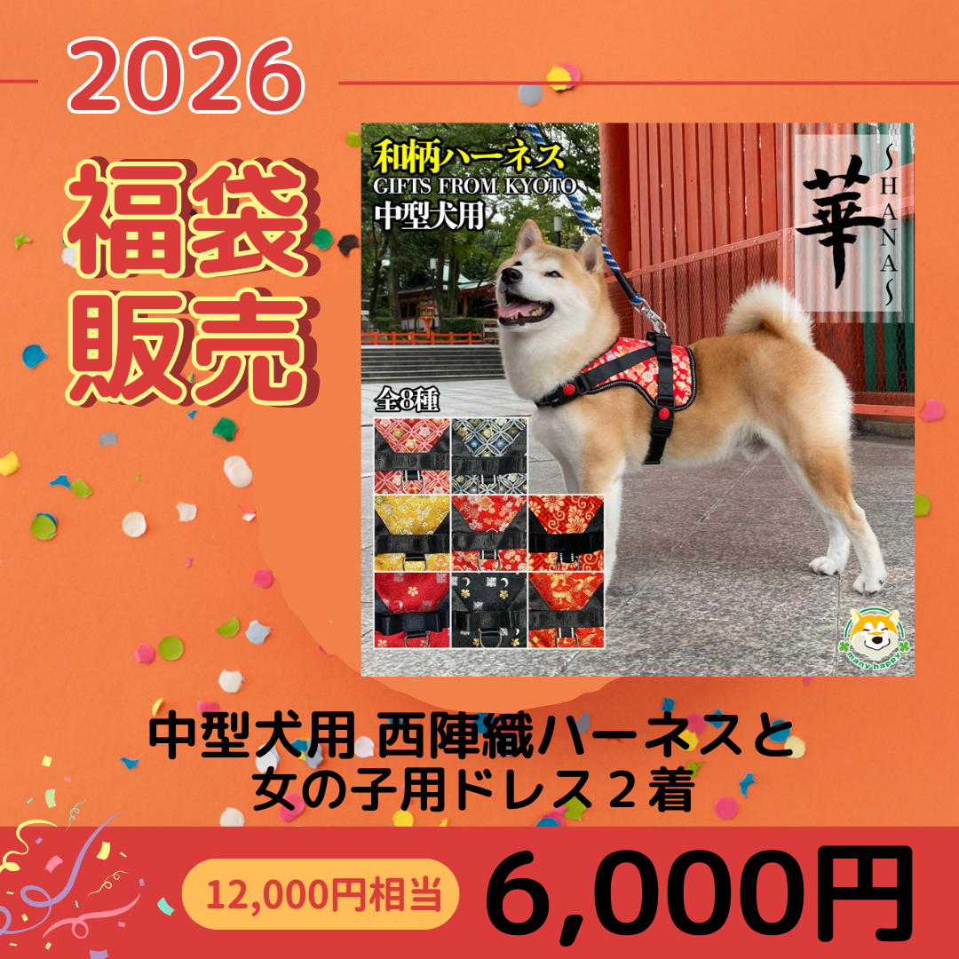 【 中型犬用 】 福袋 選べる西陣織 限定販売 女の子 合計3点 ドッグウェア 西陣織のハーネスと他ドレスなど2点 2026年も
