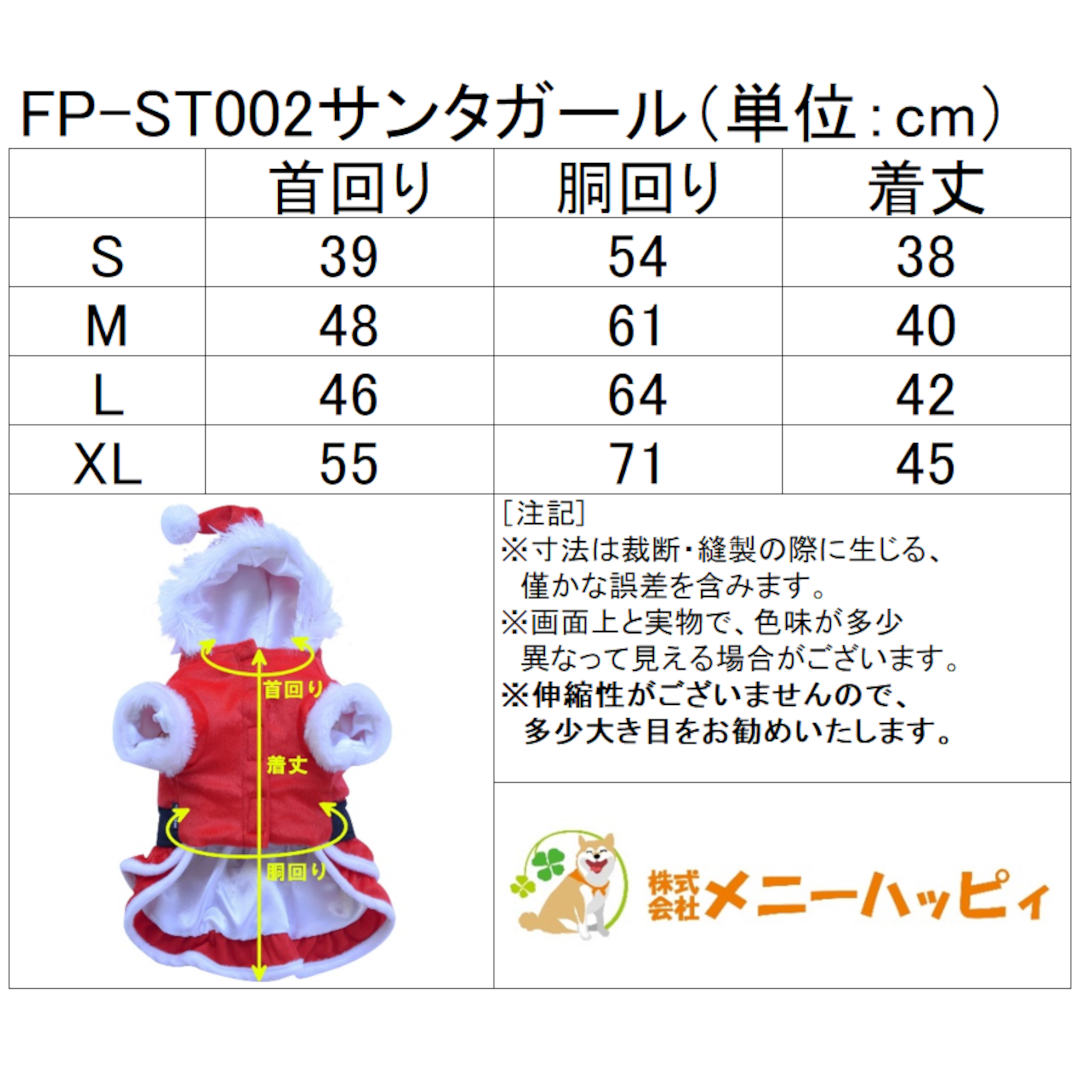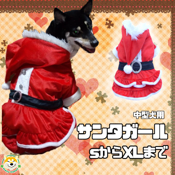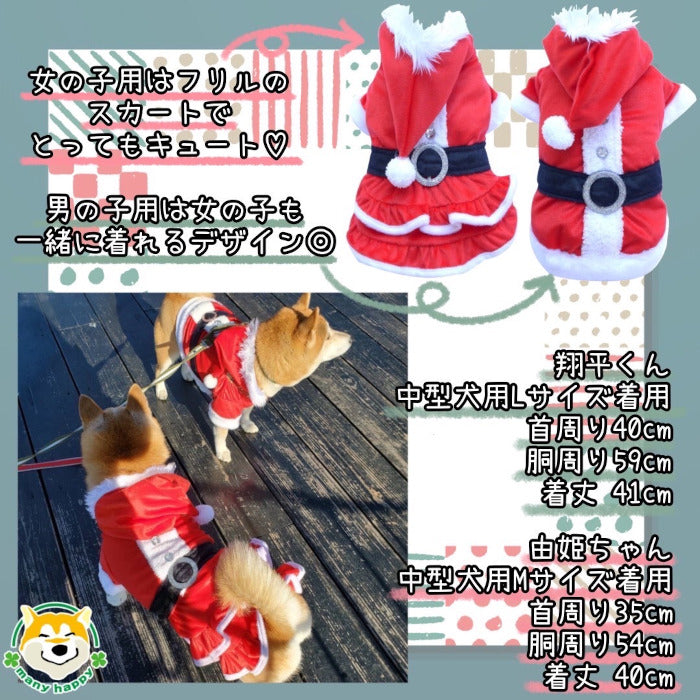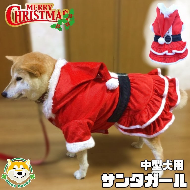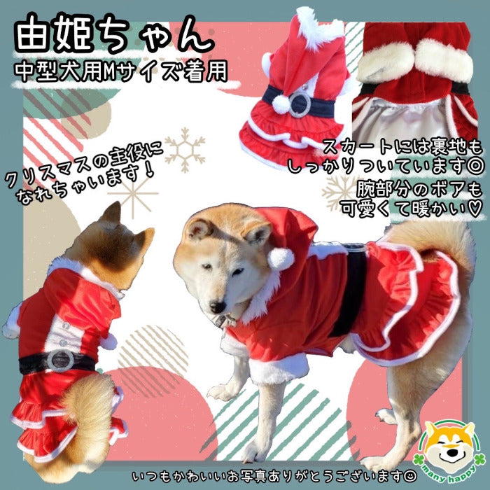 中型犬用 サンタガール 女の子 フリルスカート リアルサンタ服 SサイズからXLサイズまで