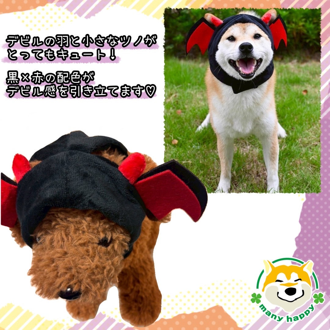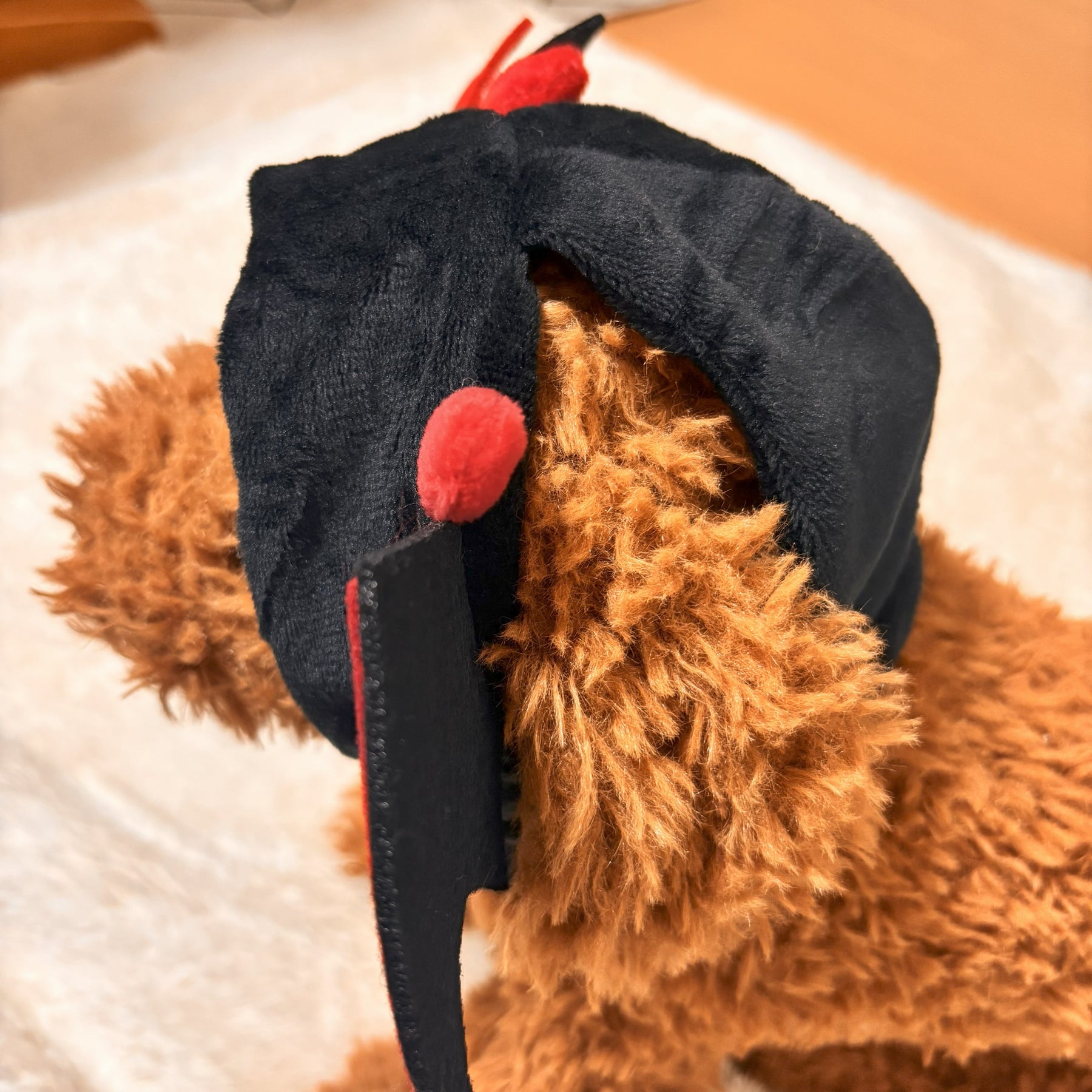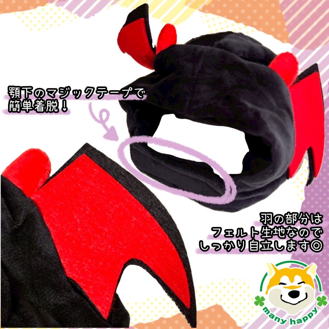数量限定 なりきりデビル おもしろ帽子 ハロウィン 犬 猫 帽子 ドラキュラ 変身 ボア 黒 マジックテープ留め 犬服
